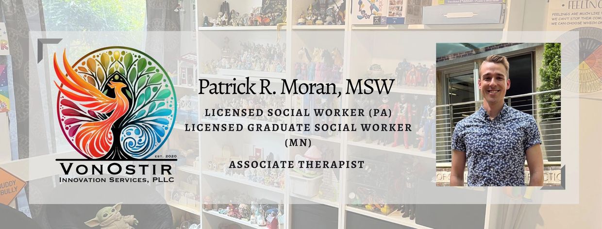 Patrick is a Licensed Social Worker (LSW) in the state of Pennsylvania and a Licensed Graduate Social Worker (LGSW) in the state of Minnesota under the supervision of Kurt W. Oster, LICSW-S, LCSW, QS, BCD, RPT™. He received his Master of Social Work (MSW) from the University of Pennsylvania with a specialization in LGBTQ+ Policy and Practice. As a psychotherapist, Patrick utilizes concepts from cognitive-behavioral therapy (CBT), dialectical behavior therapy (DBT), mindfulness, narrative therapy, bibliotherapy, techniques of sand tray and play, and Vedic psychology.
